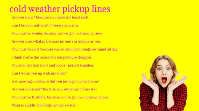 When the temperature drops, it’s the perfect time to turn up the charm ❄️🔥. Cold Weather Pick-Up Lines bring warmth, humor, and a little flirtation … Read more